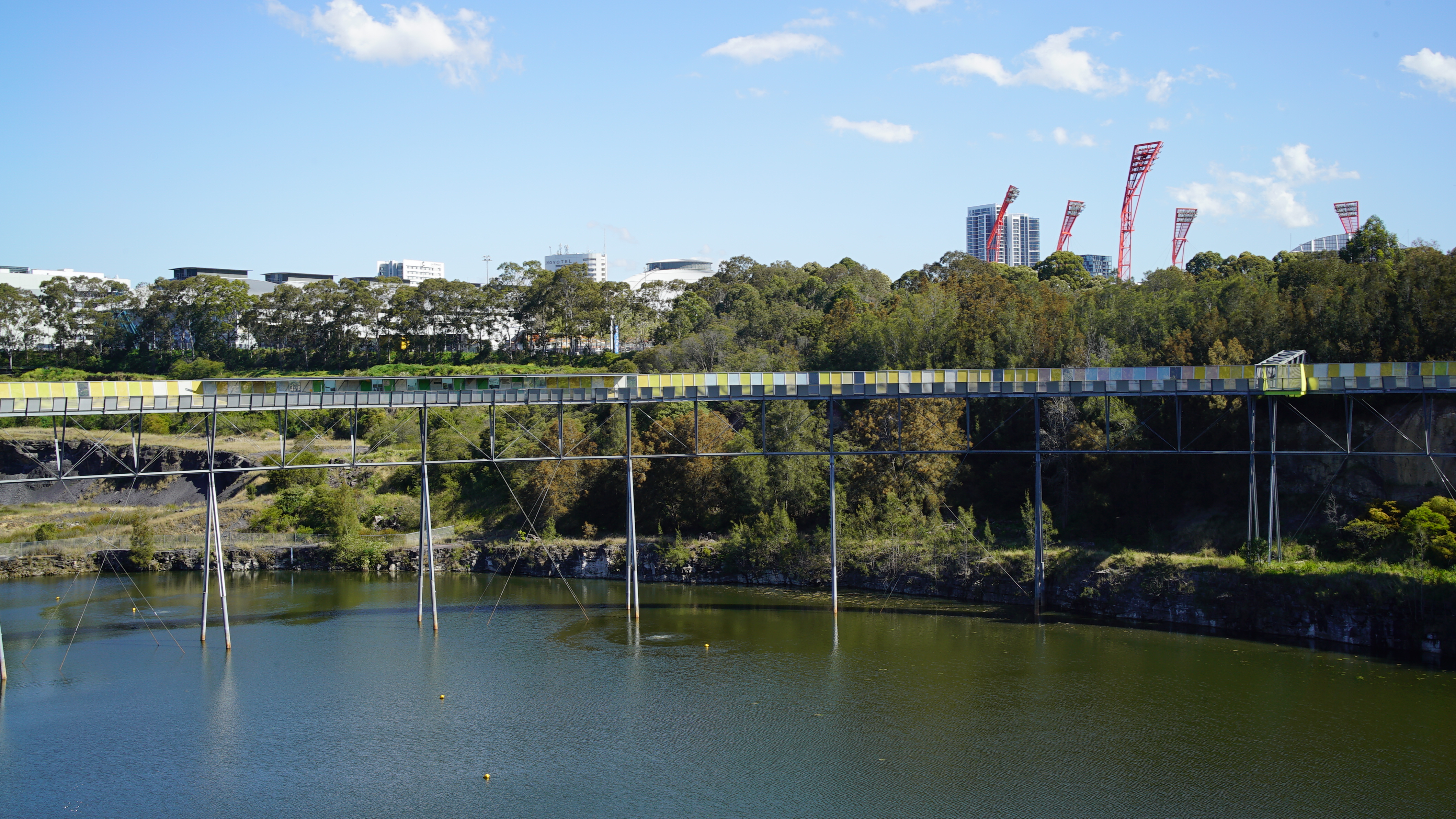 The Sydney Olympic Parks Brick Pits and public walkway, a thriving population of the Green and Golden Bell Frogs are breeding below (image James Nguyen 2025)